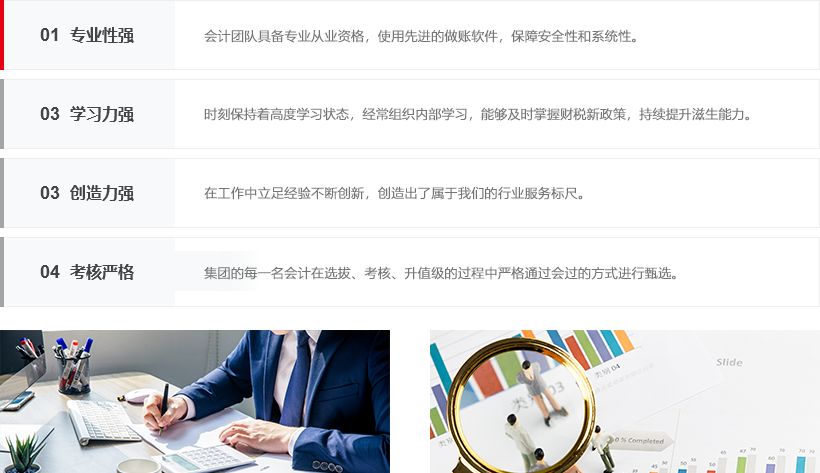 我們提供的財務服務,都是基于多年創新經驗總結出的科學流程和做賬標準,保證服務精細,數據精準、專業高效。
